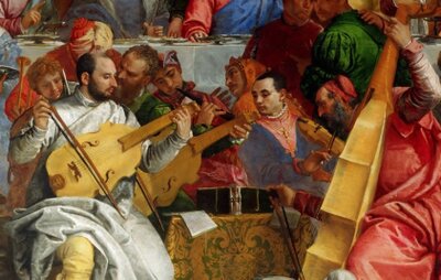 Figure 5. The Wedding of Cana. Detail of the viola consort and the cornettist (Bassano).